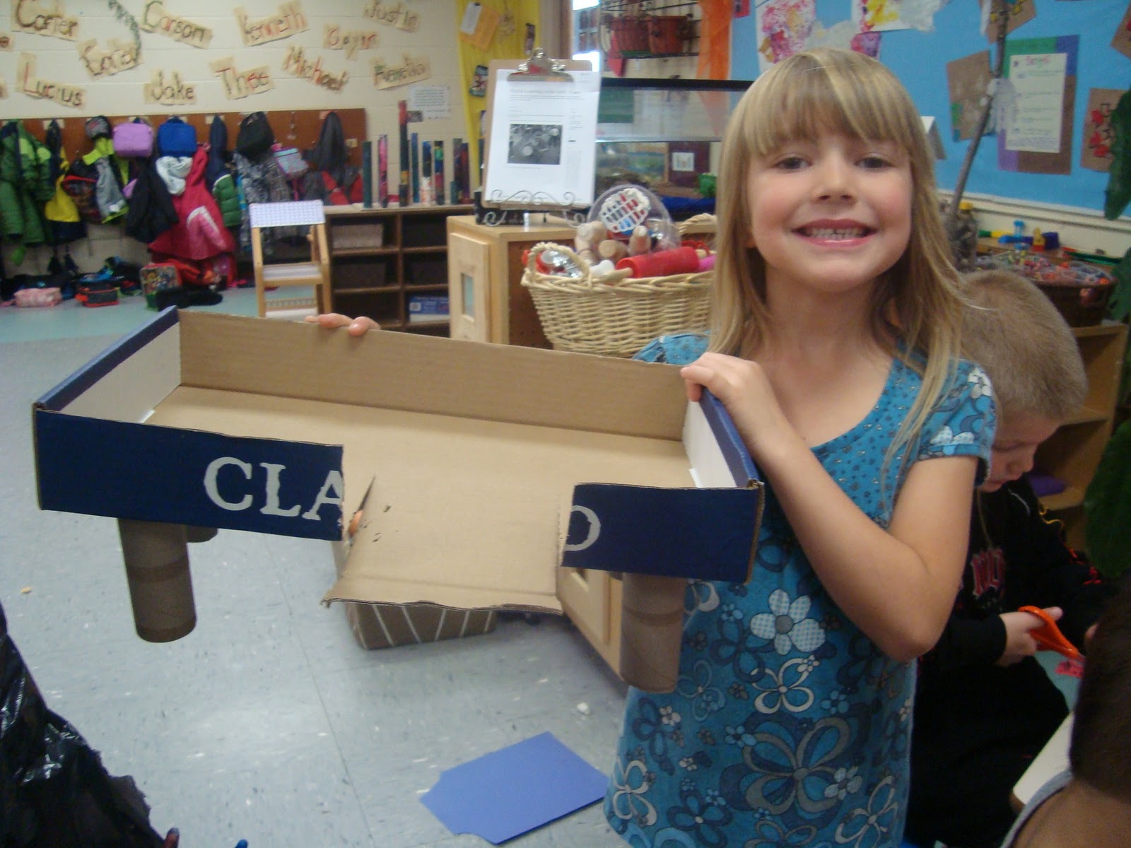 Mrs. Bombardier invited the children to explore an assortment of recycled cardboard at the art table. It was so interesting to see how they worked with the material and what they created.